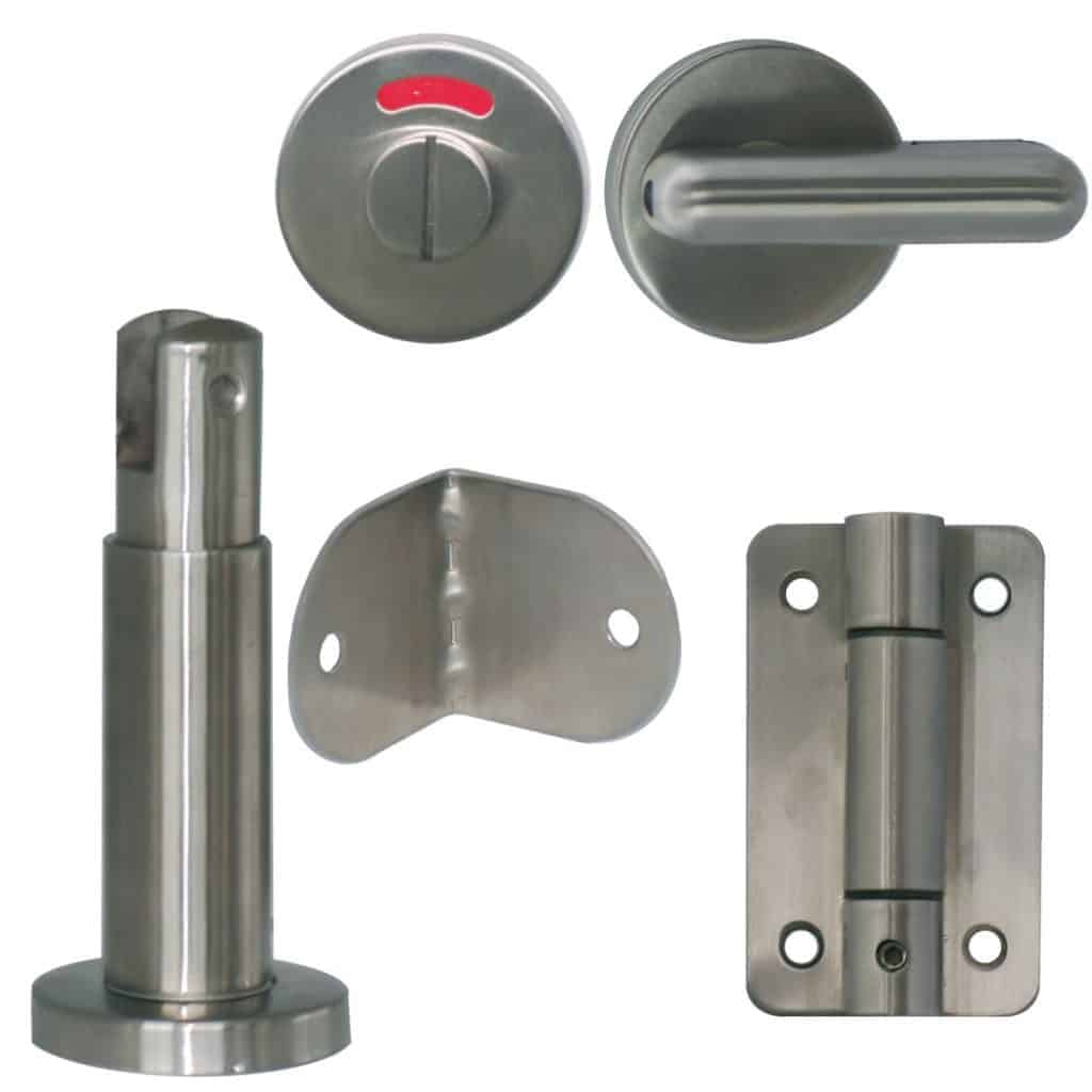 Gamme complète d’accessoires en inox pour cabines d’essayage ou de douche :