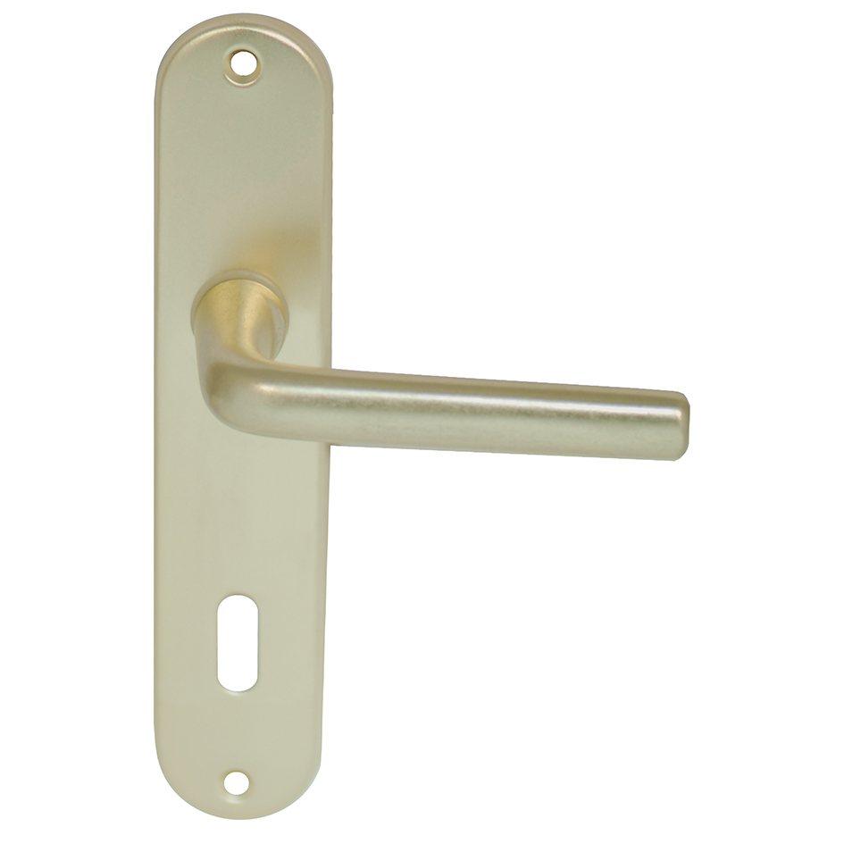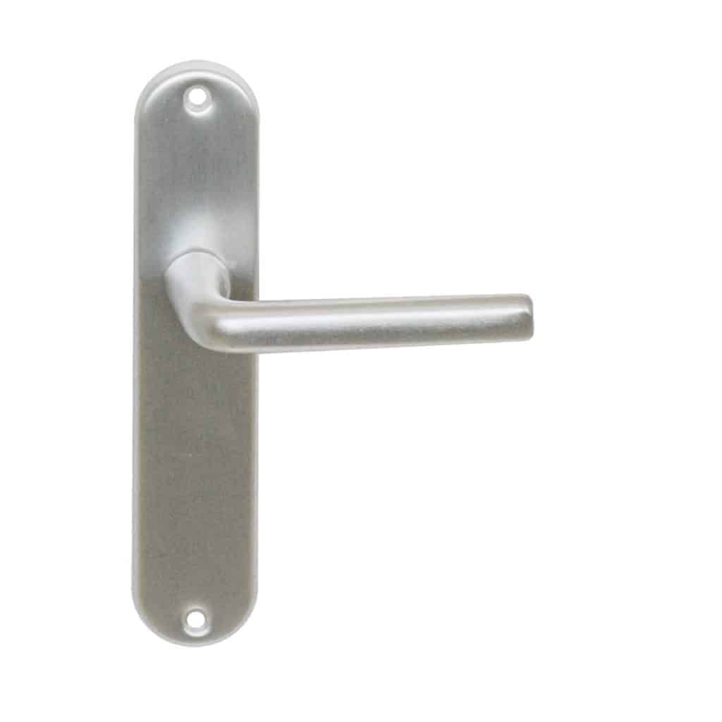 Ensemble alu éco, composé d’une béquille sur petite plaque emboutie, ea. de fixation 165mm, sans ressort de rappel.