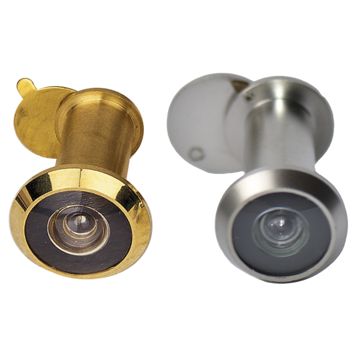 Judas optique avec 2 lentilles en verre, pour portes de 35 à 58mm d’épaisseur en finition inox et portes de 35 à 52mm en laiton.