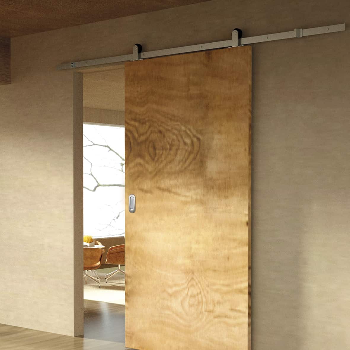 Système de fixation décoratif complet pour portes intérieures coulissantes en applique en bois de 35 à 60mm d’épaisseur, jusqu’à 60kg.