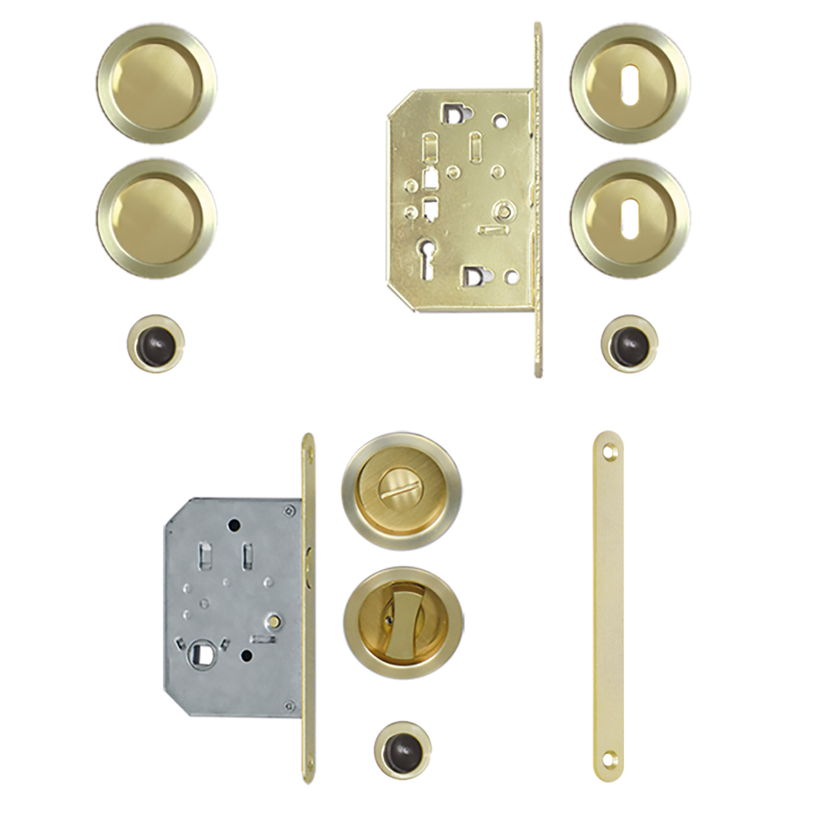 Kit pour portes coulissantes – Poignées rondes Or Satiné