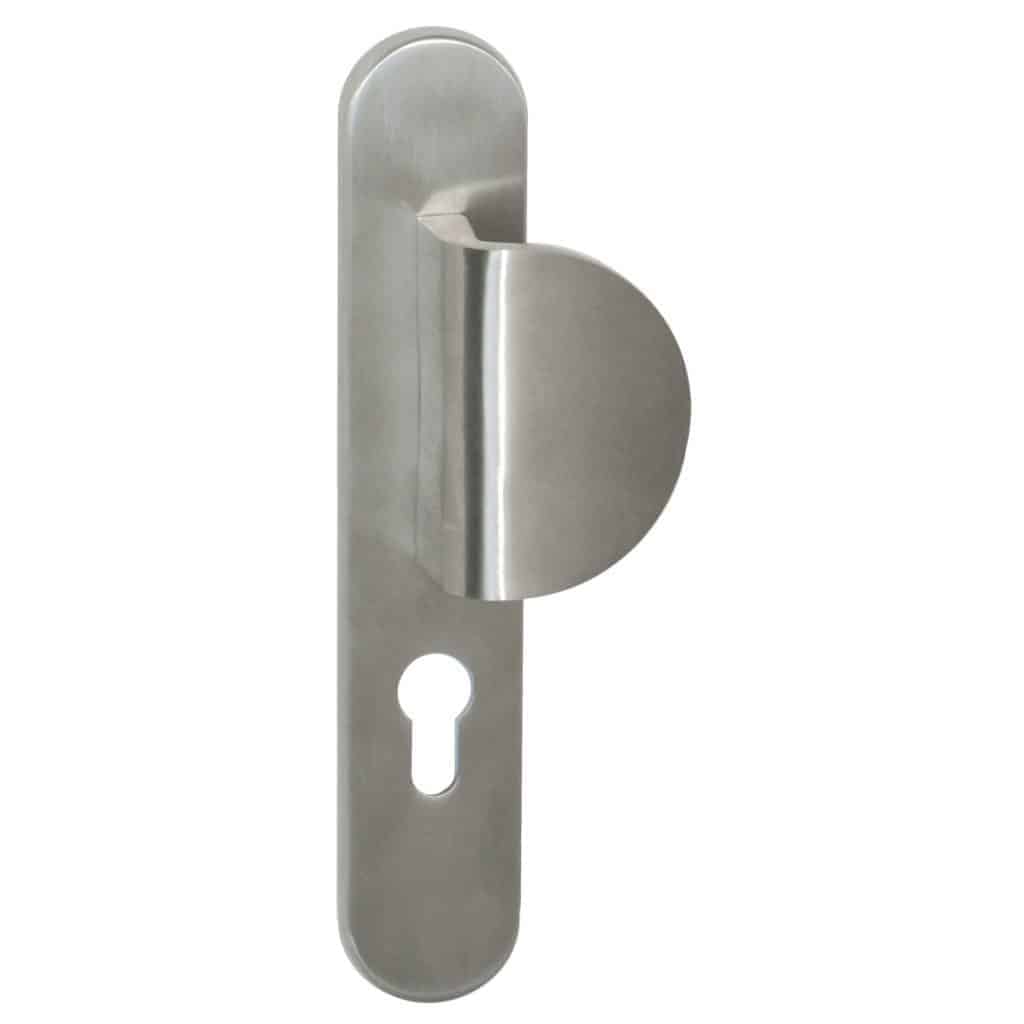 Ce modèle conçu pour durer dans le temps est composé d’une poignée recourbée en U sur plaque épaisse massive en inox 304, indémontable depuis l’extérieur grâce aux piliers.