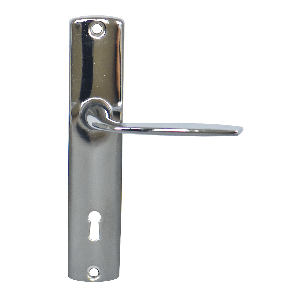 Ensemble économique chrome brillant, composé d’une béquille sur petite plaque emboutie, ea. de fixation 165mm, sans ressort de rappel.