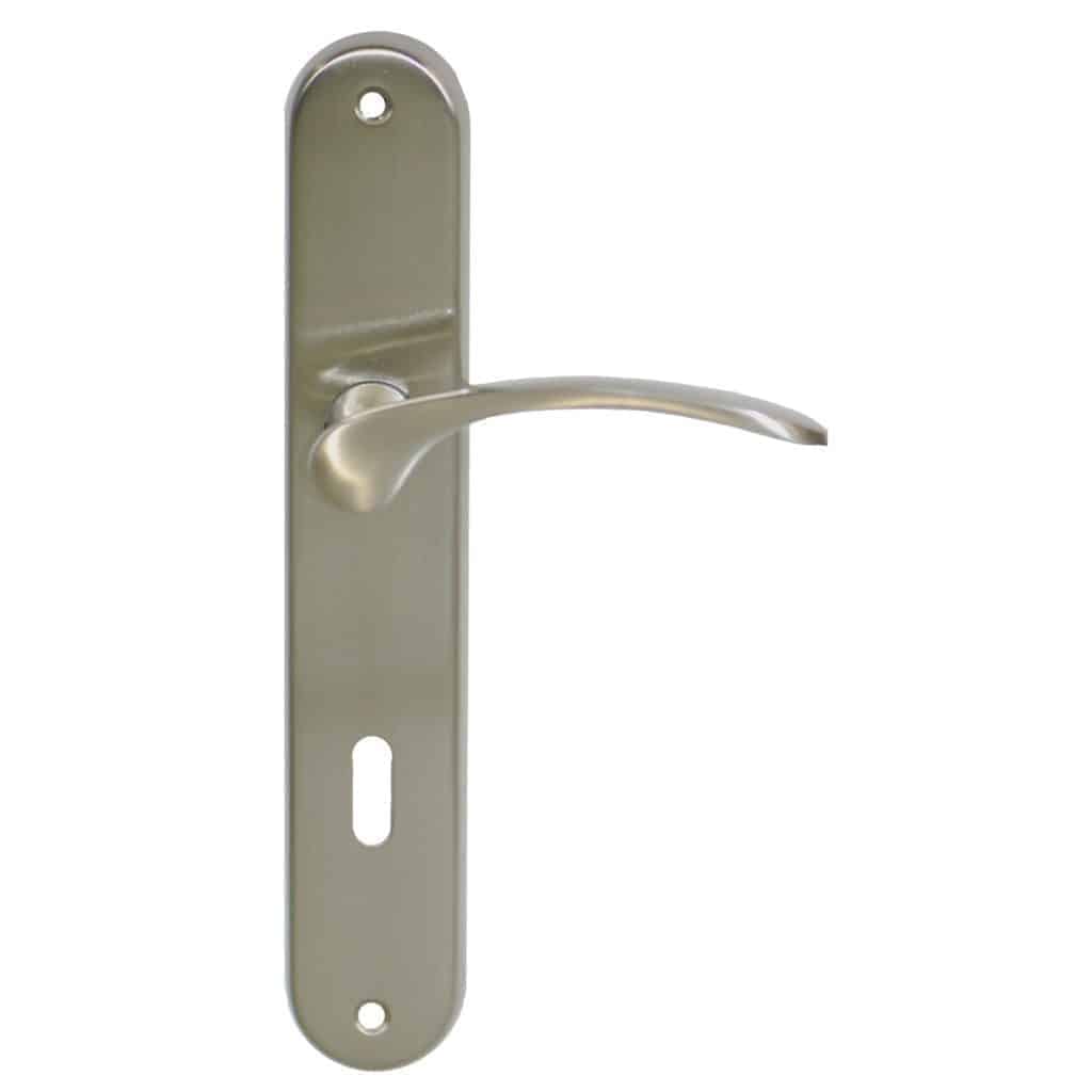 Ensemble de porte Nickelé mat sur grande plaque ea.195mm fonction cylindre