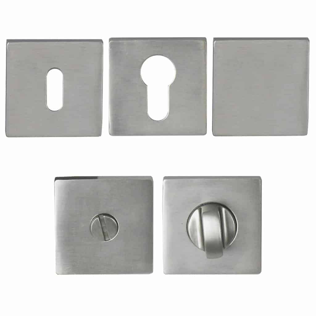 Rosaces de fonction carrées en alu finition Nickelée, clipsées sur sous-rosace en nylon Gris
