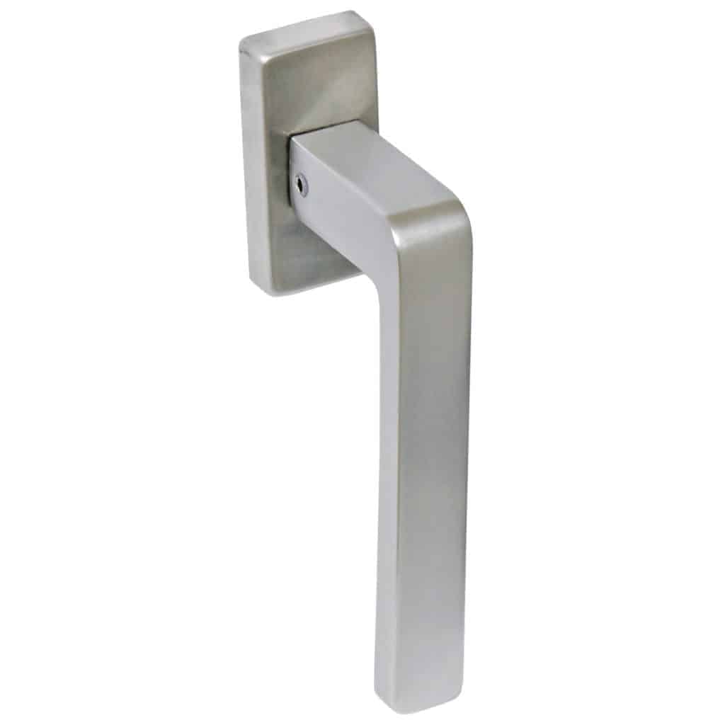 Poignée de fenêtre finition Inox à section rectangulaire sur rosace rectangle