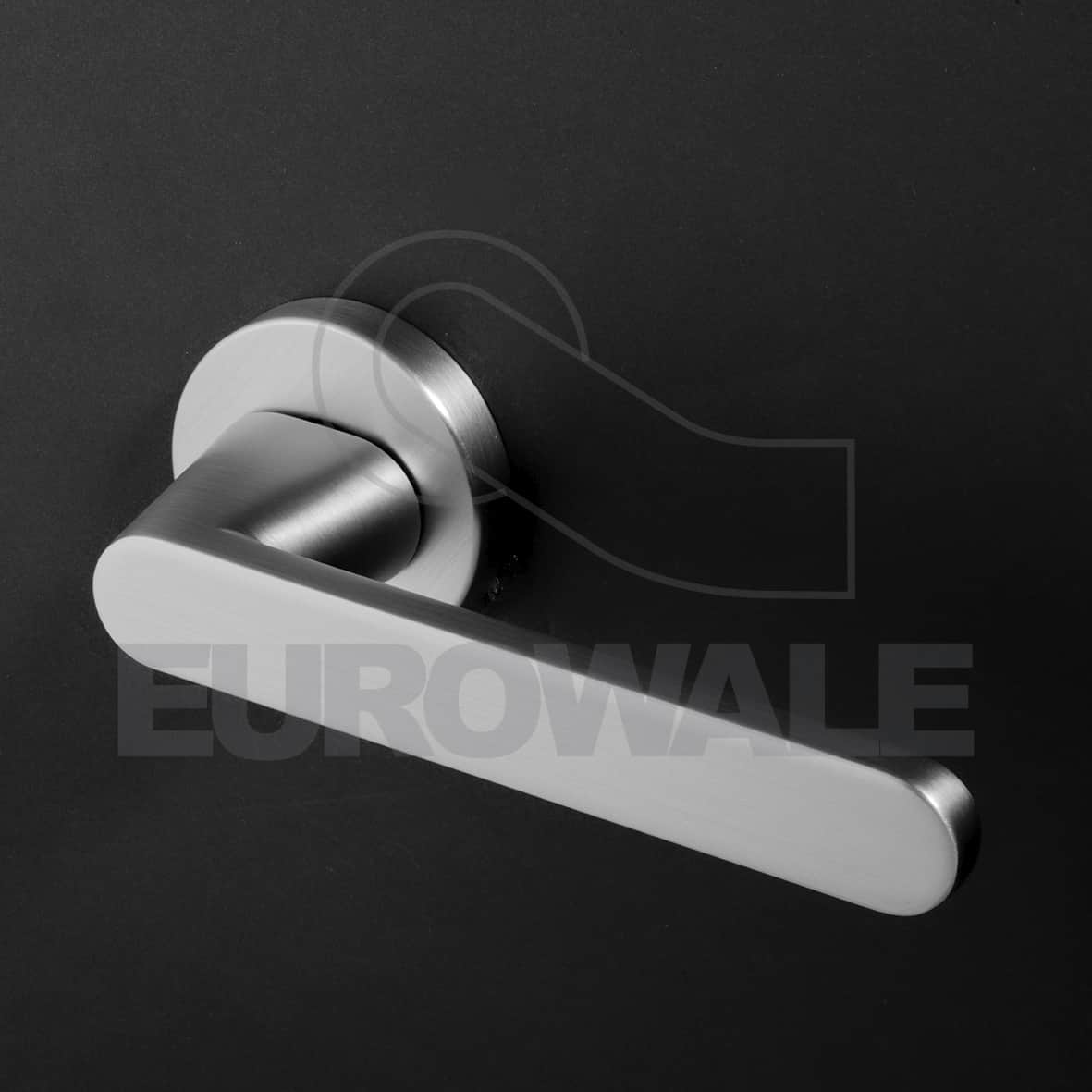 • Poignée massive avec ressort de rappel sur rosace ronde à clipser sur sous-construction en nylon