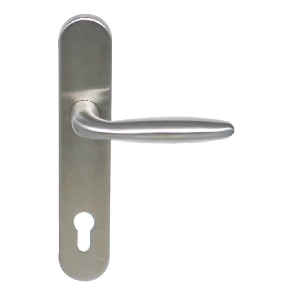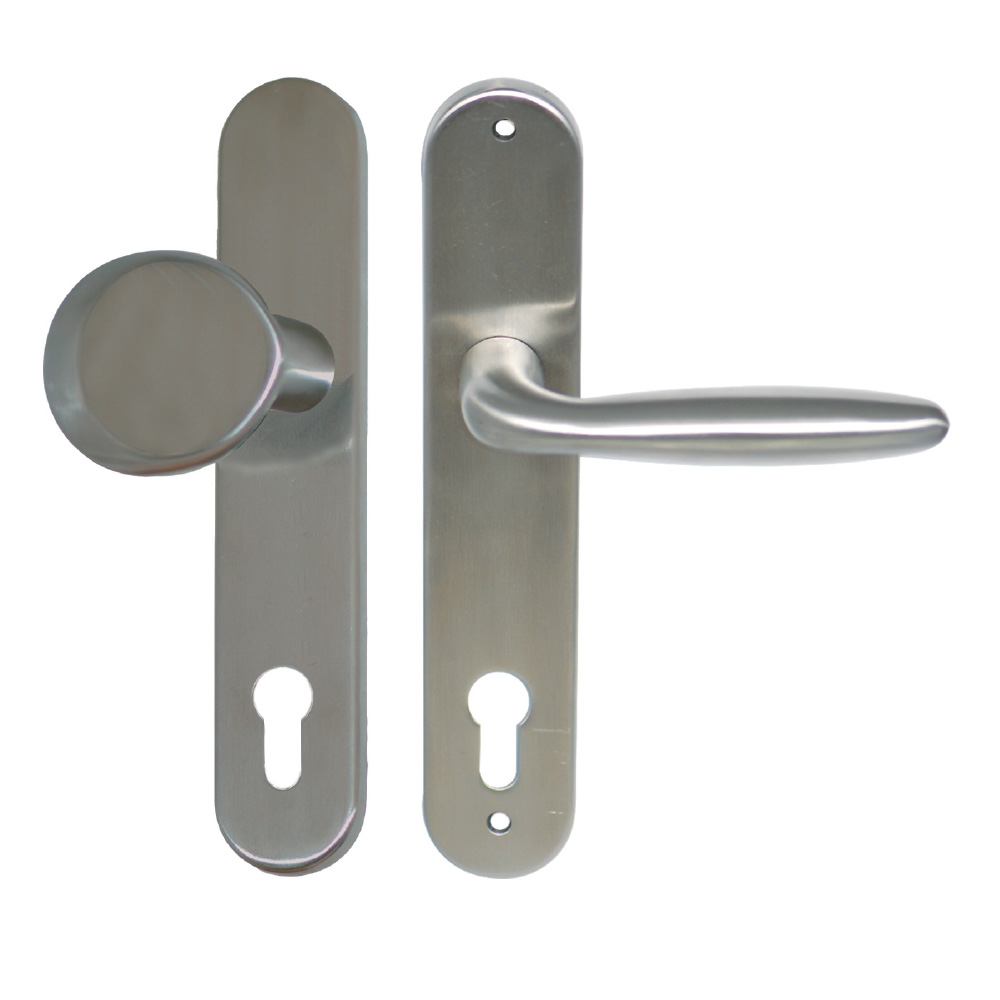 Ensemble en inox spécialement conçut pour les portes d’entrée équipées de serrures cylindre entraxe 92 .