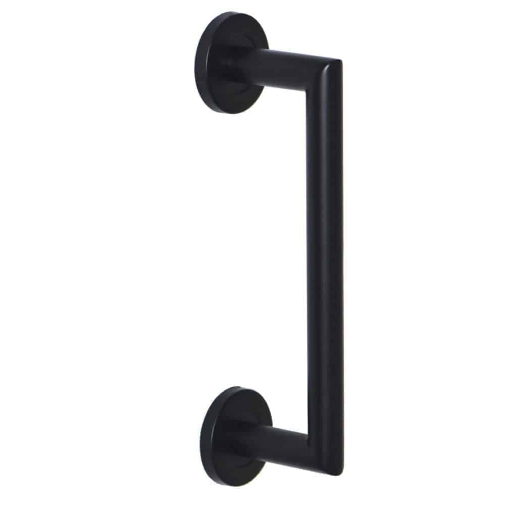 Poignée fine à section ronde D.19 en angle vif sur rosaces rondes à fixer en applique sur une porte